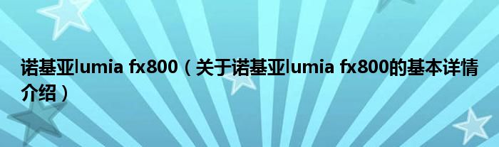 本文关于诺基亚lumia fx800的基本详情介绍就讲解完毕,希望对大家有所帮助。