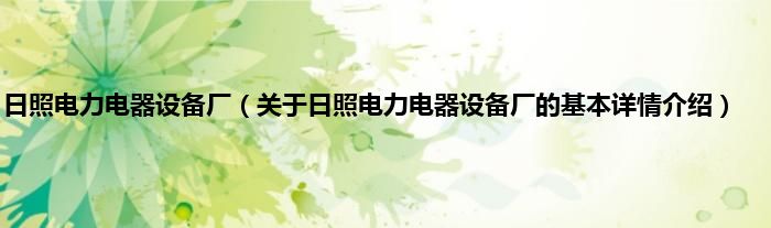 本文关于日照电力电器设备厂的基本详情介绍就讲解完毕,希望对大家有所帮助。