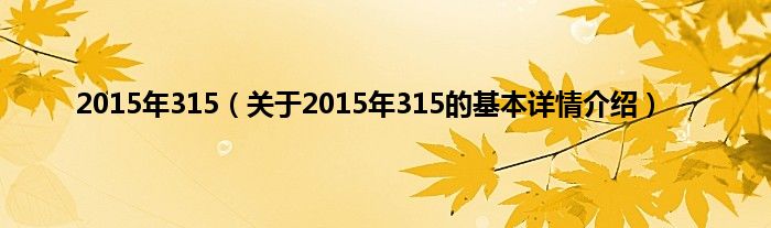 本文关于2015年315的基本详情介绍就讲解完毕,希望对大家有所帮助。