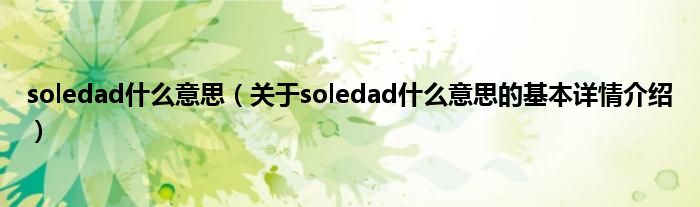 本文关于soledad什么意思的基本详情介绍就讲解完毕,希望对大家有所帮助。