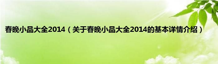 本文关于春晚小品大全2014的基本详情介绍就讲解完毕,希望对大家有所帮助。