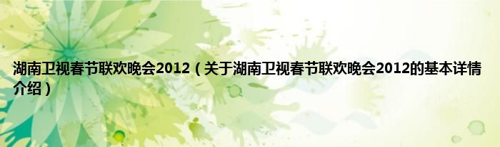 本文关于湖南卫视春节联欢晚会2012的基本详情介绍就讲解完毕,希望对大家有所帮助。