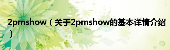 本文关于2pmshow的基本详情介绍就讲解完毕,希望对大家有所帮助。
