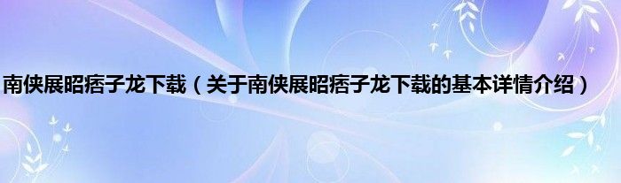 本文关于南侠展昭痞子龙下载的基本详情介绍就讲解完毕,希望对大家有所帮助。