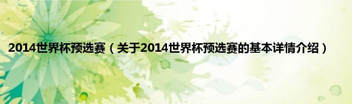 本文关于2014世界杯预选赛的基本详情介绍就讲解完毕,希望对大家有所帮助。