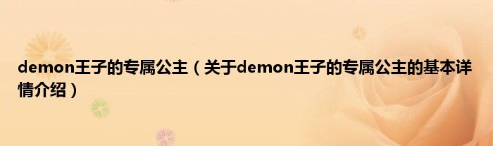 本文关于demon王子的专属公主的基本详情介绍就讲解完毕,希望对大家有所帮助。