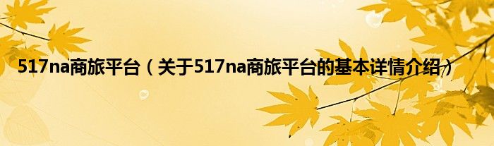 本文关于517na商旅平台的基本详情介绍就讲解完毕,希望对大家有所帮助。