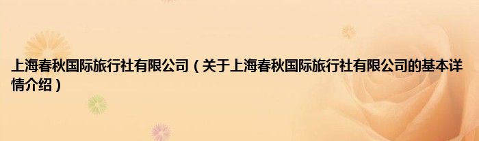 本文关于上海春秋国际旅行社有限公司的基本详情介绍就讲解完毕,希望对大家有所帮助。