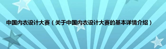 本文关于中国内衣设计大赛的基本详情介绍就讲解完毕,希望对大家有所帮助。
