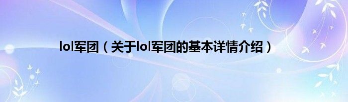 本文关于lol军团的基本详情介绍就讲解完毕,希望对大家有所帮助。
