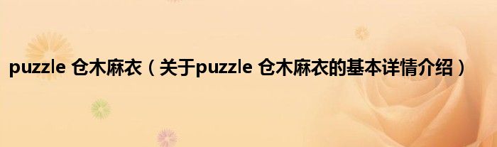 本文关于puzzle 仓木麻衣的基本详情介绍就讲解完毕,希望对大家有所帮助。