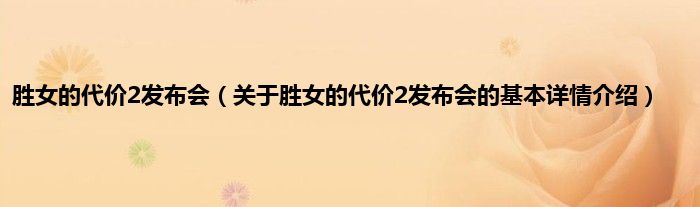 本文关于胜女的代价2发布会的基本详情介绍就讲解完毕,希望对大家有所帮助。