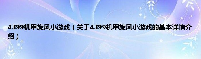 本文关于4399机甲旋风小游戏的基本详情介绍就讲解完毕,希望对大家有所帮助。