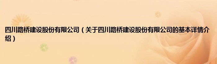 本文关于四川路桥建设股份有限公司的基本详情介绍就讲解完毕,希望对大家有所帮助。