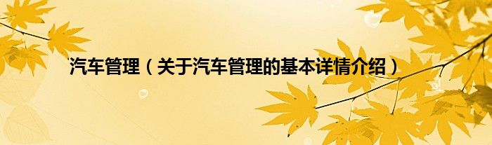 本文关于汽车管理的基本详情介绍就讲解完毕,希望对大家有所帮助。