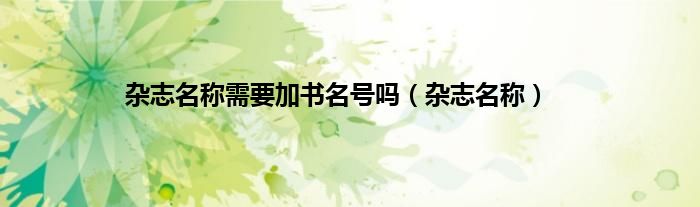 以上就是【杂志名称需要加书名号吗,杂志名称】相关内容。