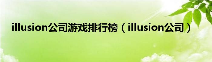 大家好,小问来为大家解答以上问题。illusion公司游戏排行榜,illusion公司这个很多人还不知道,现在让我们一起来看看吧!