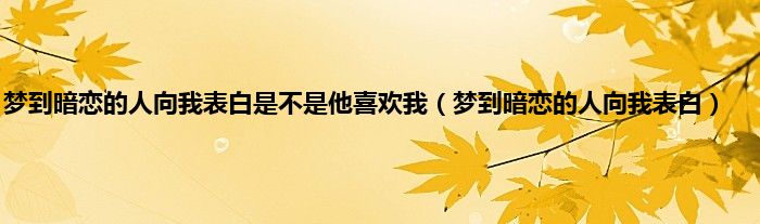 大家好,小问来为大家解答以上问题。梦到暗恋的人向我表白是不是他喜欢我,梦到暗恋的人向我表白这个很多人还不知道,现在让我们一起来看看吧!