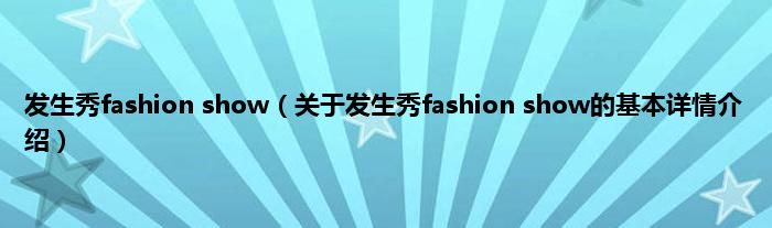 本文关于发生秀fashion show的基本详情介绍就讲解完毕,希望对大家有所帮助。