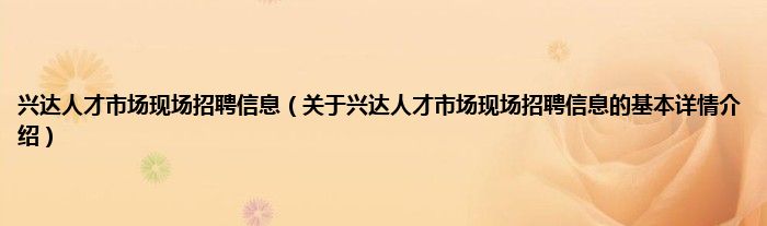 本文关于兴达人才市场现场招聘信息的基本详情介绍就讲解完毕,希望对大家有所帮助。