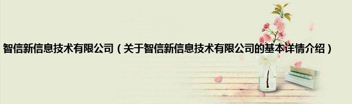 本文关于智信新信息技术有限公司的基本详情介绍就讲解完毕,希望对大家有所帮助。