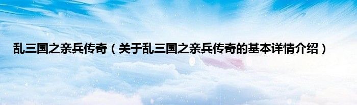 本文关于乱三国之亲兵传奇的基本详情介绍就讲解完毕,希望对大家有所帮助。