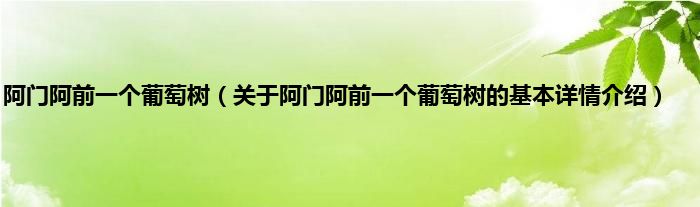本文关于阿门阿前一个葡萄树的基本详情介绍就讲解完毕,希望对大家有所帮助。
