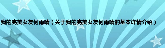 本文关于我的完美女友何雨晴的基本详情介绍就讲解完毕,希望对大家有所帮助。