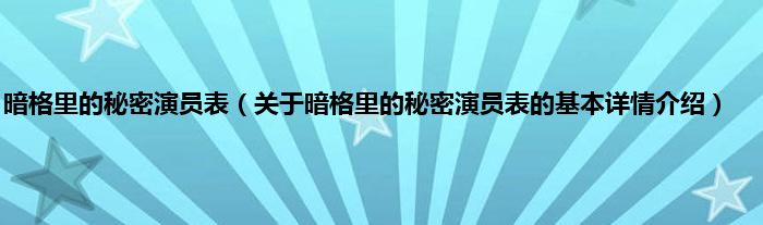 本文关于暗格里的秘密演员表的基本详情介绍就讲解完毕,希望对大家有所帮助。