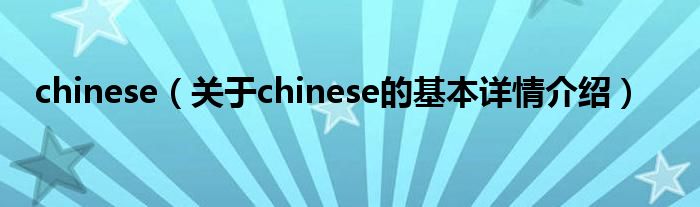 本文关于chinese的基本详情介绍就讲解完毕,希望对大家有所帮助。