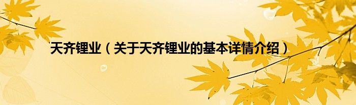 本文关于天齐锂业的基本详情介绍就讲解完毕,希望对大家有所帮助。