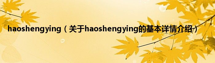 本文关于haoshengying的基本详情介绍就讲解完毕,希望对大家有所帮助。