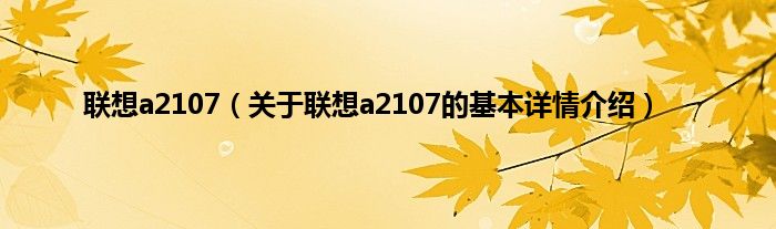 本文关于联想a2107的基本详情介绍就讲解完毕,希望对大家有所帮助。