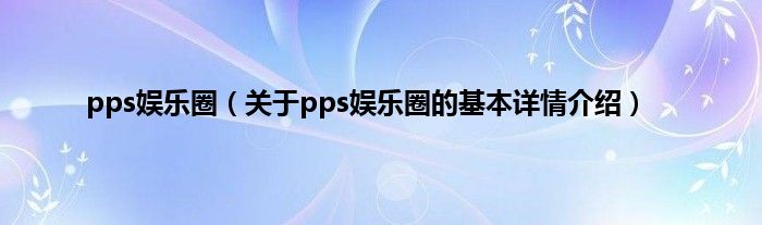 本文关于pps娱乐圈的基本详情介绍就讲解完毕,希望对大家有所帮助。