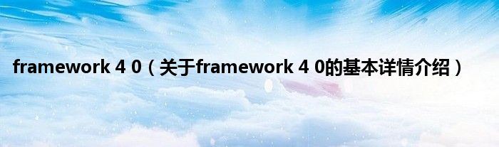 本文关于framework 4 0的基本详情介绍就讲解完毕,希望对大家有所帮助。