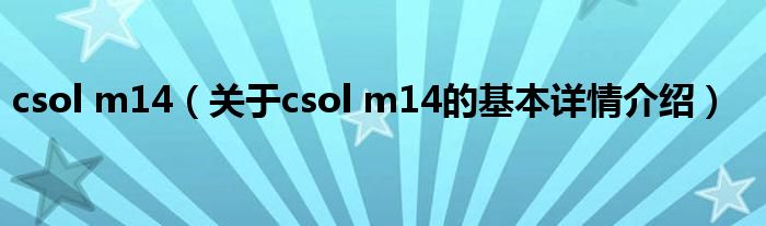 大家好我是小蝌蚪,csol m14,关于csol m14的基本详情介绍很多人还不知道,那么现在让我们一起来看看吧!