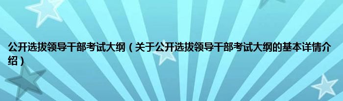本文关于公开选拔领导干部考试大纲的基本详情介绍就讲解完毕,希望对大家有所帮助。