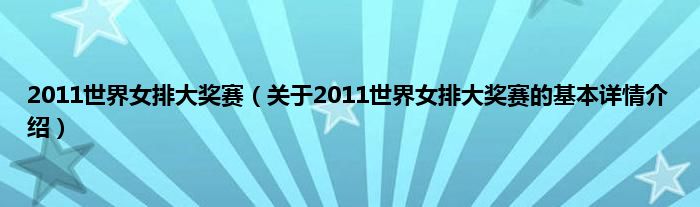 本文关于2011世界女排大奖赛的基本详情介绍就讲解完毕,希望对大家有所帮助。