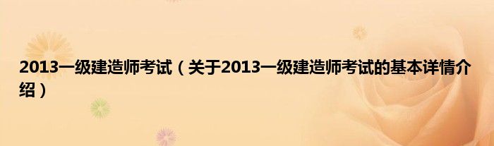 本文关于2013一级建造师考试的基本详情介绍就讲解完毕,希望对大家有所帮助。
