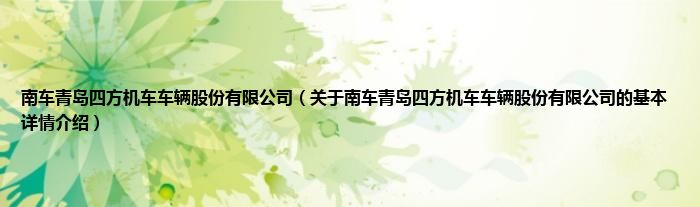 本文关于南车青岛四方机车车辆股份有限公司的基本详情介绍就讲解完毕,希望对大家有所帮助。