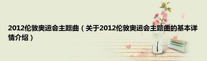 本文关于2012伦敦奥运会主题曲的基本详情介绍就讲解完毕,希望对大家有所帮助。