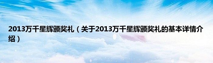 本文关于2013万千星辉颁奖礼的基本详情介绍就讲解完毕,希望对大家有所帮助。