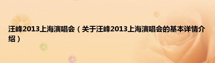 汪峰2013上海演唱会(关于汪峰2013上海演唱会的基本详情介绍)