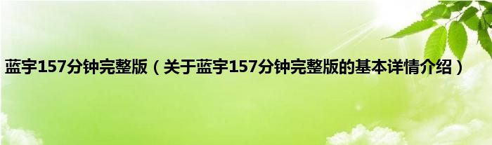 蓝宇157分钟完整版(关于蓝宇157分钟完整版的基本详情介绍)