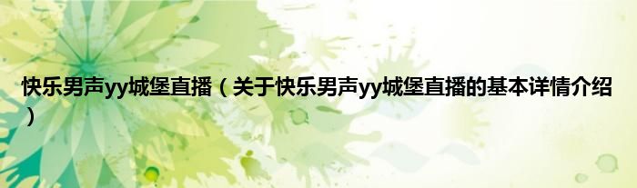 本文关于快乐男声yy城堡直播的基本详情介绍就讲解完毕,希望对大家有所帮助。