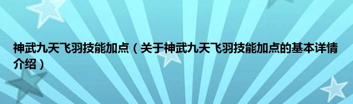 本文关于神武九天飞羽技能加点的基本详情介绍就讲解完毕,希望对大家有所帮助。