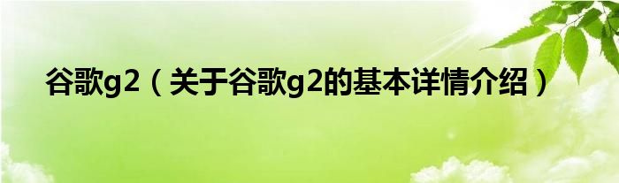 本文关于谷歌g2的基本详情介绍就讲解完毕,希望对大家有所帮助。