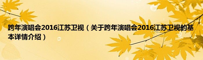 跨年演唱会2016江苏卫视(关于跨年演唱会2016江苏卫视的基本详情介绍)