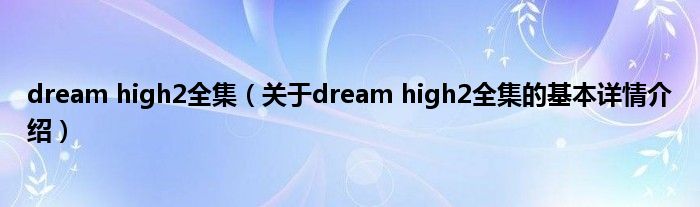 dream high2全集(关于dream high2全集的基本详情介绍)