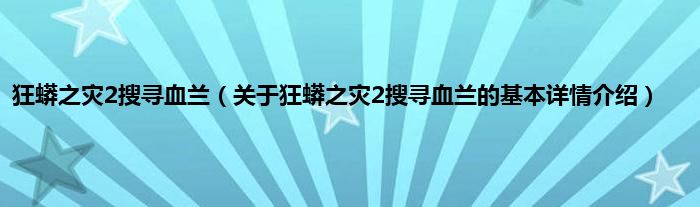 本文关于狂蟒之灾2搜寻血兰的基本详情介绍就讲解完毕,希望对大家有所帮助。